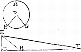 Ex circulo abg cuius centrum d abscindatur sector dbg et ponatur triangulum ezh angulum z rectum habens, sitque70 latus ez semidiametro71 db, latus vero zh periferiae bg aequale. Aio quod aequalis est sector dbg trigono ezh. 27 Producatur enim zh ponaturque toti periferiae abg aequalis zt et connectatur et eritque per 4am huius, circulus abg aequalis trigono ezt. Sed ex ultima 6i et coniuncta proportione, est circulus abg ad sectorem dbg sicut tota periferia abg ad periferiam bg et ideo sicut zt ad zh, et ideo per primam sexti, sicut triangulum ezt ad triangulum ezh estque circulus abg triangulo ezt aequalis. 28 Igitur per 14am 5i et sector dbg erit trigono ezh aequalis, quod est propositum. Hinc72 manifestum est quod sector circuli aequalis est rectangulo, quod sub semidiametro circuli73, et linea aequali74 dimidio periferiae assumptae continetur. [S:31] Scholium. Attende quod ex 4a praemissa75 circuli superficies producitur ex [A:25r] ductu semidiametri in dimidium periferiae. Ex praesenti vero, sectoris superficies producitur ex semidiametro circuli in dimidium periferiae sectoris. 29 Quemadmodum trigoni rectanguli superficies consurgit ex ductu alterius laterum quae circa rectum angulum in dimidium reliqui per 42am primi ElementorumEucl.I.42.. Scholium. 30 Ex hac quoque propositione sequitur, ut sectorum ratio componatur ex rationibus semidiametrorum et arcuum; utque similium76 sectorum ratio sit sicut semidiametrorum duplata; utque sectores, quorum semidiametri sunt arcubus reciproci, sint invicem aequales. Similiter77 ut portionum circularium similium ratio sit quae chordarum dupla. |