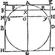 Circulo ABGD circumscribatur quadratum EZHT, sintque contactuum puncta A, B, G, D, et connectatur AG: item ducantur inter latera ZH, ET ipsisque EZ, HT paralleli, KL, MN ad placitum secantes axem, quidem AG apud X, O, peripheriam autem ABG apud P, R, S, Y: et circum AG diametrum immotam circumducatur, donec ad locum suum redat; parallelogrammum cylindrum, semicirculus vero sphaeram describet, eritque AG axis tam sphaerae, quam cylindri. Item EZ, HT diametri basium cylindri [S:64] sphaerae diametro aequales, et cylindrus sphaeram circumscribet: contingent namque cylindricae bases sphaericam superficiem in punctis AG; cylindrica quoque superficies sphaericam continget, eritque contactus circuli peripheria per punctum contactus B descripta. Ipsae quoque lineae KX, MO circumductae describent circulos parallelos secantes cylindrum, ipsa autem puncta PS describent circulorum peripherias, quae communes sectiones erunt dictorum circulorum secantium cylindrum, et sphaericae superficiei. Aio itaque quod sphaerica superficies interiacens circulis, quorum diametri ZE, KL, quae scilicet describitur ab arcu AP aequalis est cylindricae superficiei iisdem circulis interpositae, quae scilicet describitur a linea ZK. Item quod sphaerica superficies, quae inter circulos, quorum diametri KL, MN, quam scilicet describit arcus PS aequalis est cylindricae superficiei, quae inter eosdem circulos, quae scilicet a linea KM describitur. Item quod sphaerica superficies, quae inter circulos, quorum diametri MN, TH, quam scilicet describit arcus SBG aequalis est cylindricae superficiei, quae inter eosdem clauditur circulos, quam scilicet describit linea MH. Primum horum, et tertium patet per corollarium 15. praemissae. Cum cylindrus ZL habeat altitudinem aequalem ipsi AX, quae est axis segmenti sphaerici PAR, et basim circulum sphaerae maximum, atque etiam cum cylindrus MT habeat altitudinem OG, qui est axis segmenti sphaerici SGY, et basim circulum in sphaera maximum.